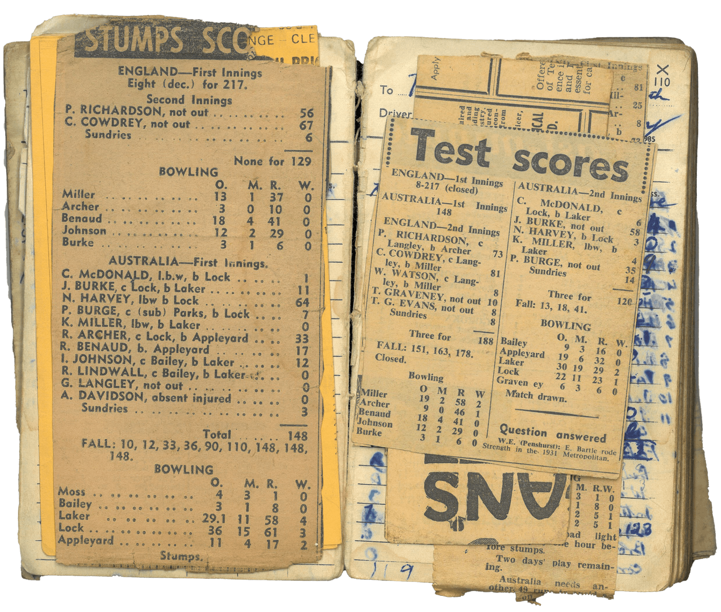 The Second Test of the 1958-59 Ashes series, featuring a famous performance by Australian batter Neil Harvey, as scored by the author’s maternal great-grandfather.