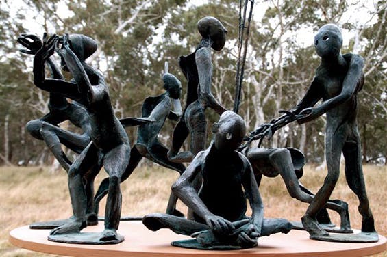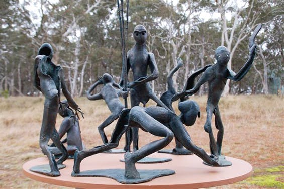 Antony Symons, Dancing with Strangers, bronze maquette on wooden base. A model for a large public sculpture symbolizing Aboriginal cultural recognition; designed in collaboration with Aboriginal Artists; yet to be commissioned. Courtesy the artist.