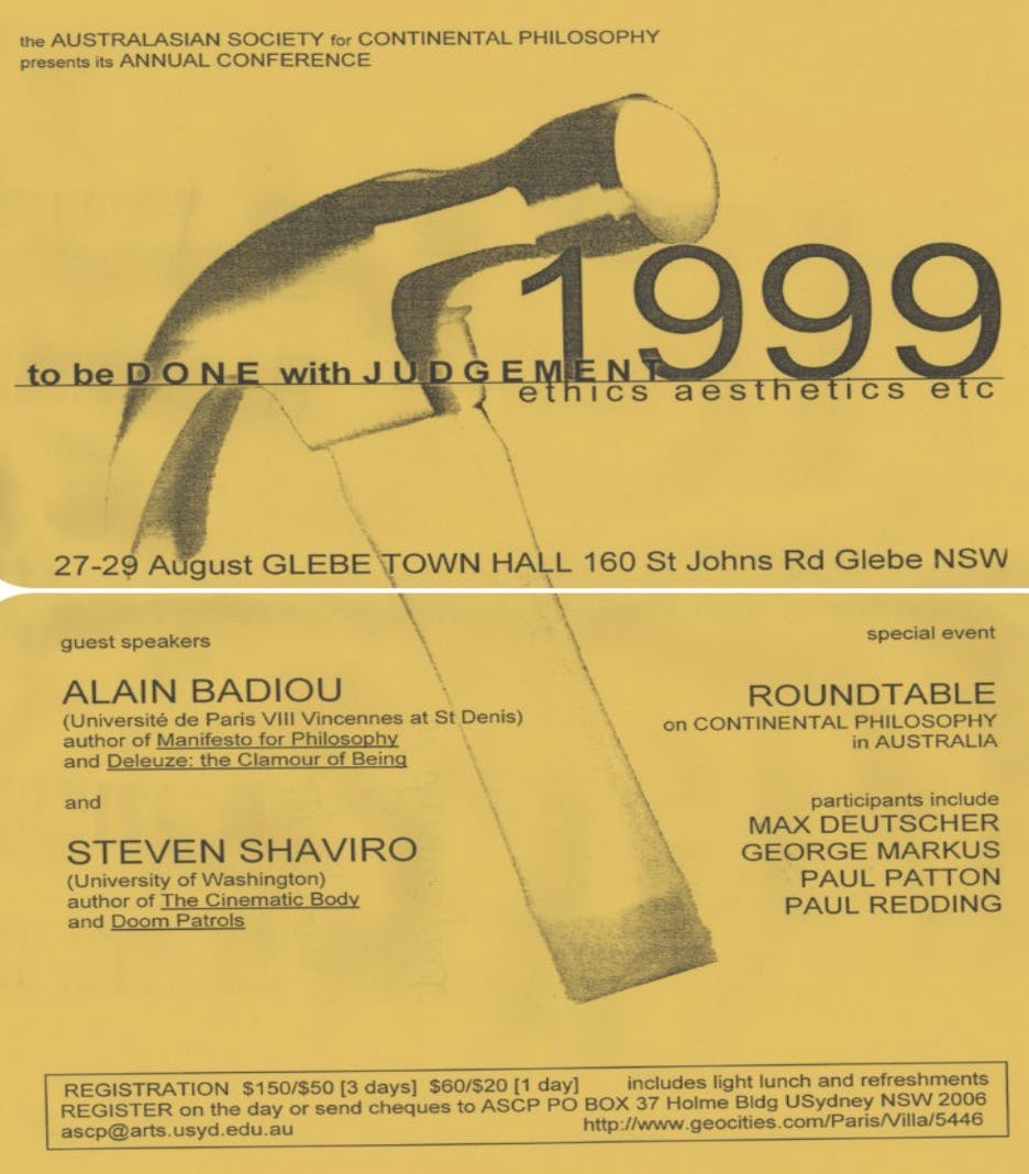 The Australian Society of Continental Philosophy’s 1999 conference poster, designed by Esther Anatolitis.